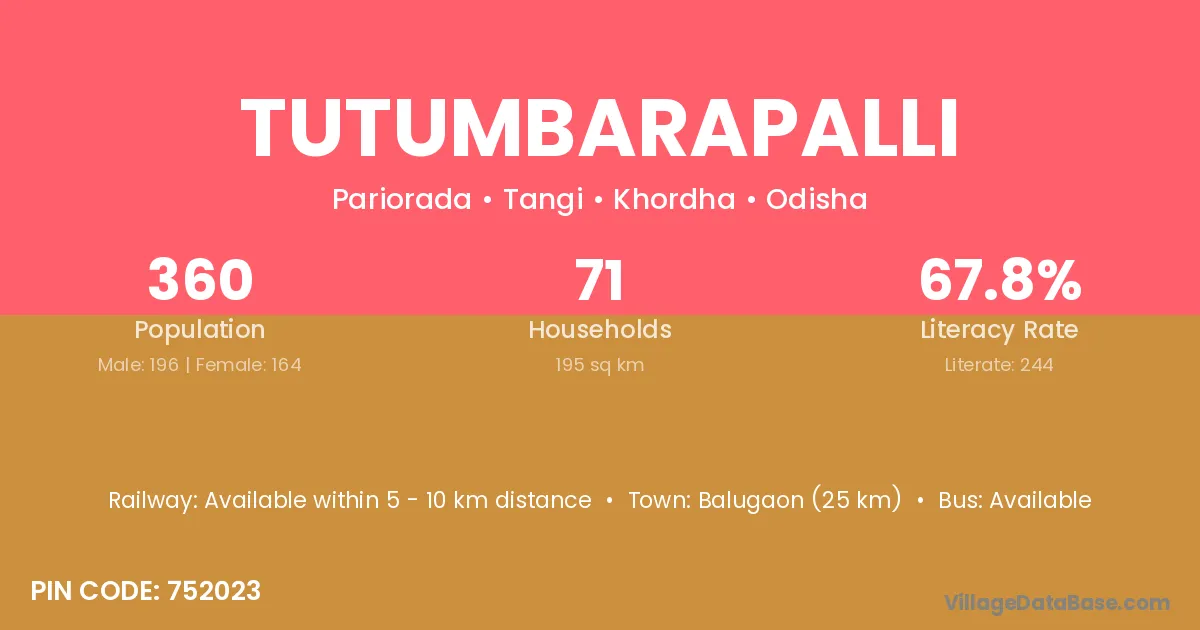 Balugaon (25 km) is the nearest town to Tutumbarapalli village for major economic activities and is located approximately 25 km away.