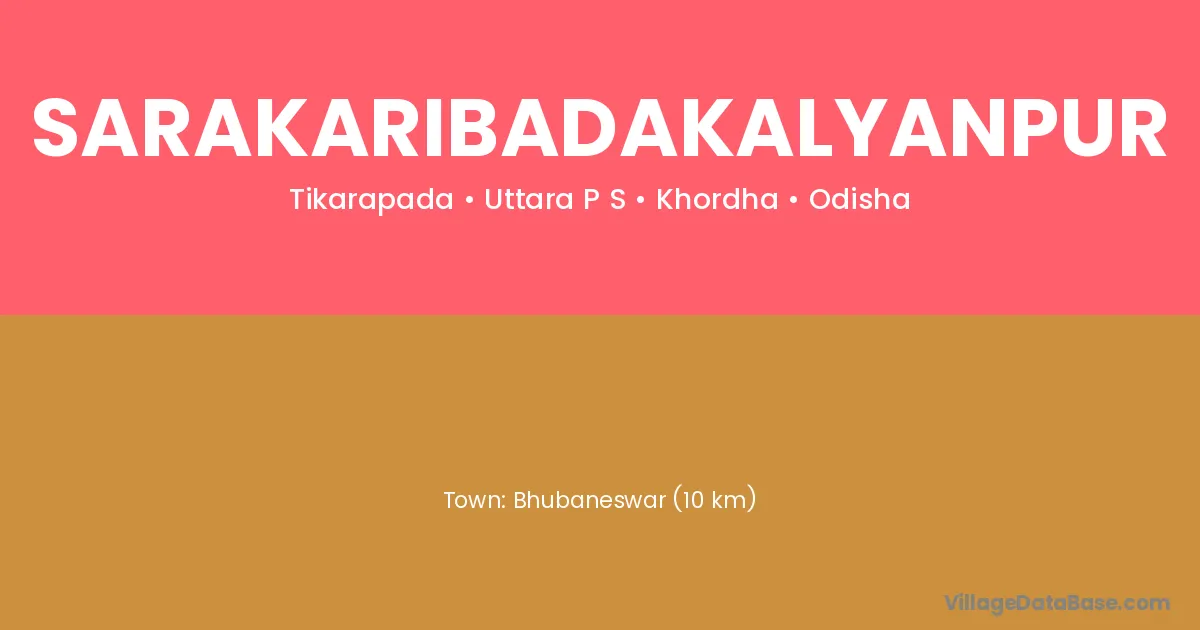 Bhubaneswar (10 km) is the nearest town to Sarakaribadakalyanpur village for major economic activities and is located approximately 10 km away.