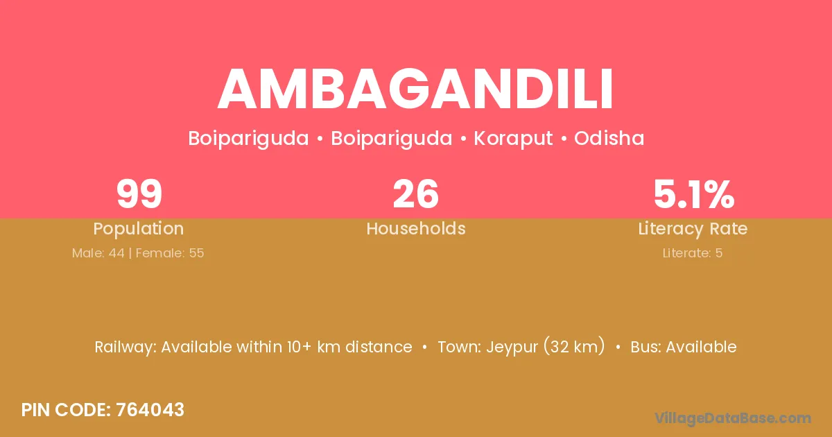 Ambagandili village has a total population of 99 people, of which 44 are males and 55 are females.