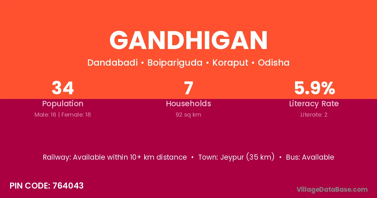 Jeypur (35 km) is the nearest town to Gandhigan village for major economic activities and is located approximately 35 km away.
