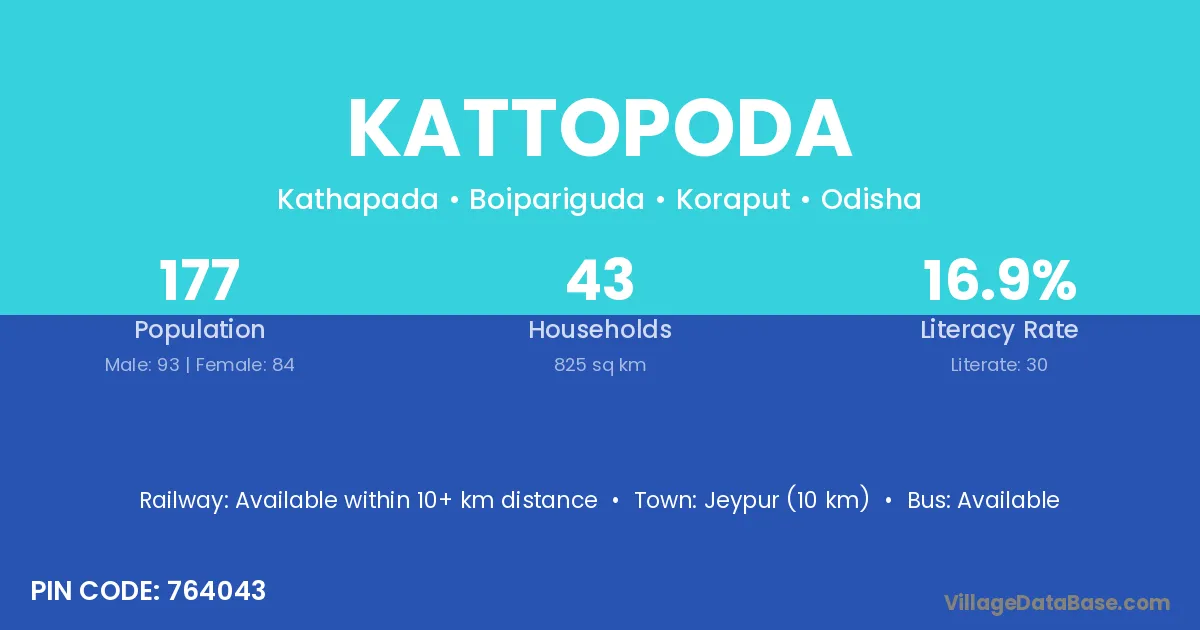 Jeypur (10 km) is the nearest town to Kattopoda village for major economic activities and is located approximately 10 km away.