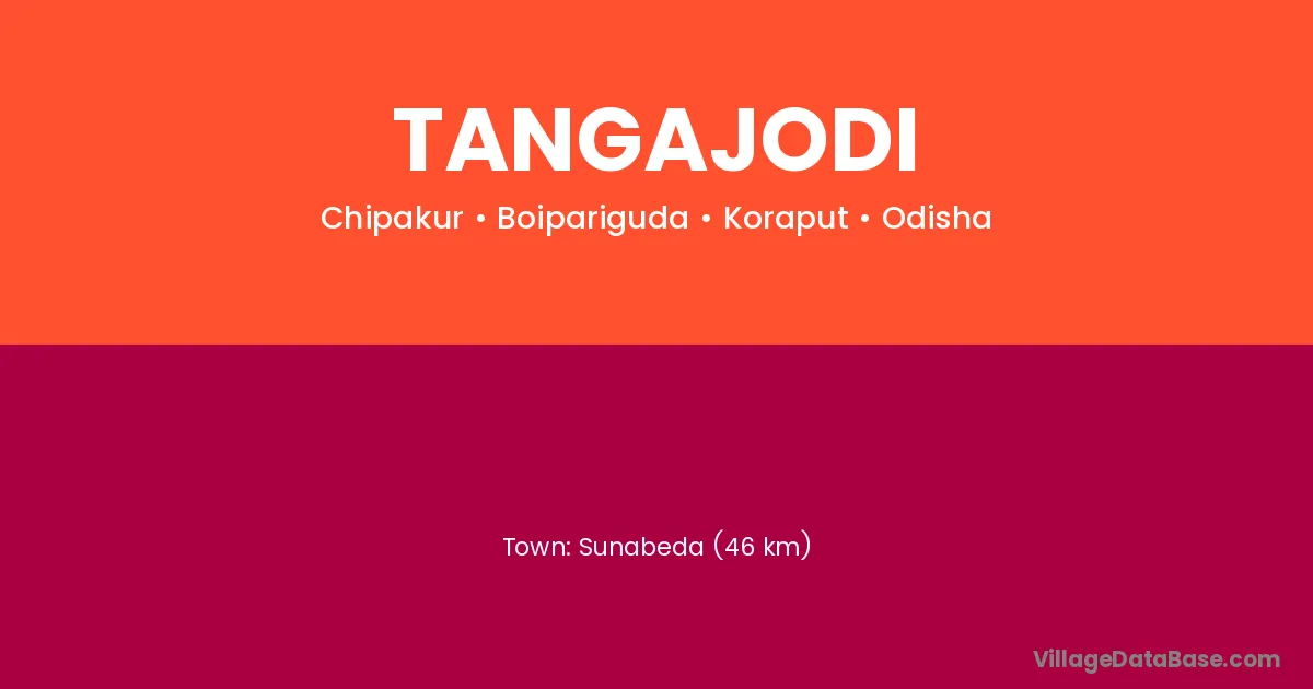 Sunabeda (46 km) is the nearest town to Tangajodi village for major economic activities and is located approximately 46 km away.