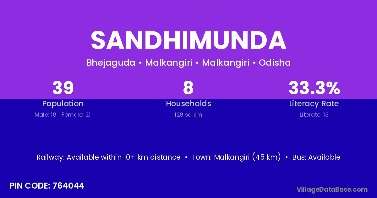 Koraput (21 km) is the nearest town to Sandhimunda village for major economic activities and is located approximately 21 km away.