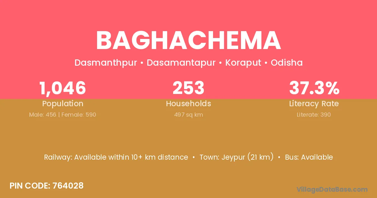 Jeypur (21 km) is the nearest town to Baghachema village for major economic activities and is located approximately 21 km away.