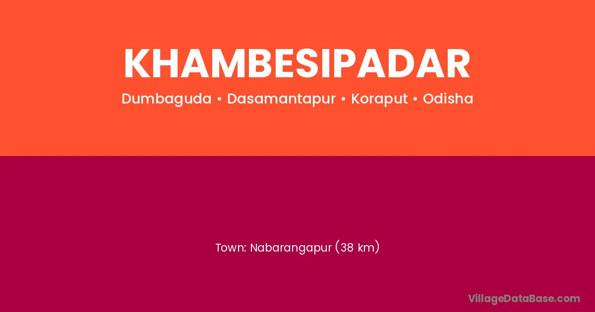 Nabarangapur (38 km) is the nearest town to Khambesipadar village for major economic activities and is located approximately 38 km away.
