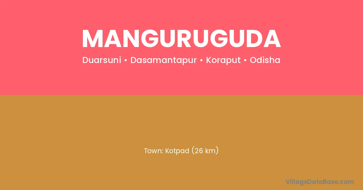 Kotpad (26 km) is the nearest town to Manguruguda village for major economic activities and is located approximately 26 km away.