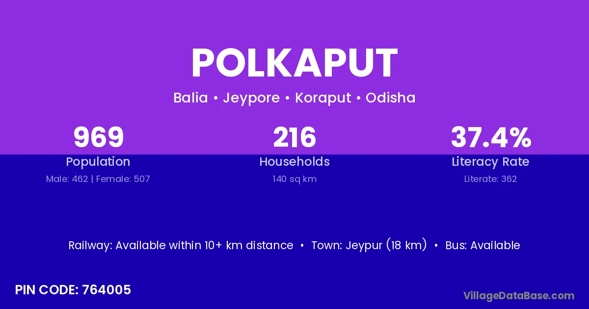Polkaput village has a total population of 969 people, of which 462 are males and 507 are females.