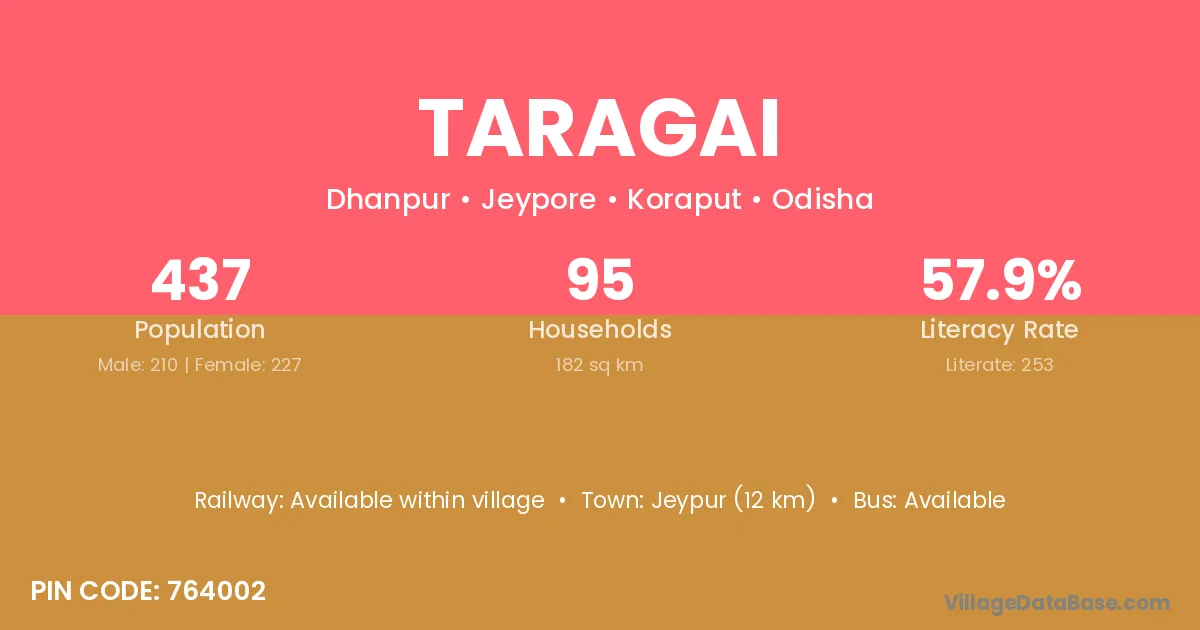 Jeypur (12 km) is the nearest town to Taragai village for major economic activities and is located approximately 12 km away.