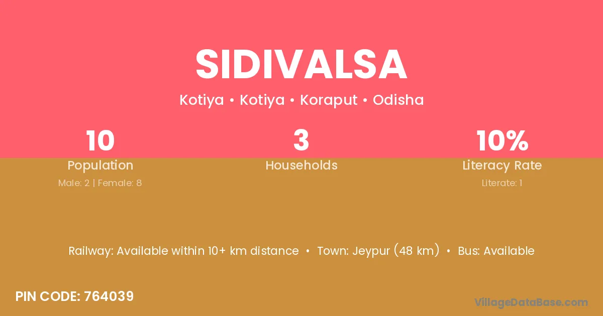 Sidivalsa village is located in the Kotiya Tehsil of the Koraput district in Odisha .