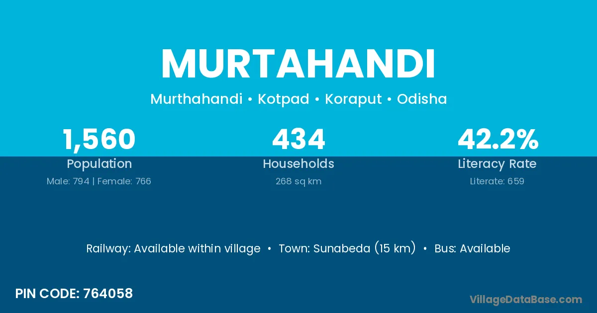 Murtahandi village has a total population of 1,560 people, of which 794 are males and 766 are females.