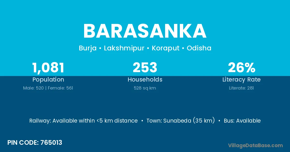 Barasanka village is located in the Lakshmipur Tehsil of the Koraput district in Odisha .