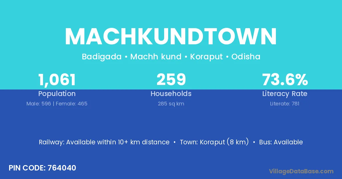 Machkundtown village has a total population of 1,061 people, of which 596 are males and 465 are females.