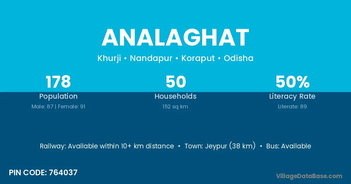 Jeypur (38 km) is the nearest town to Analaghat village for major economic activities and is located approximately 38 km away.