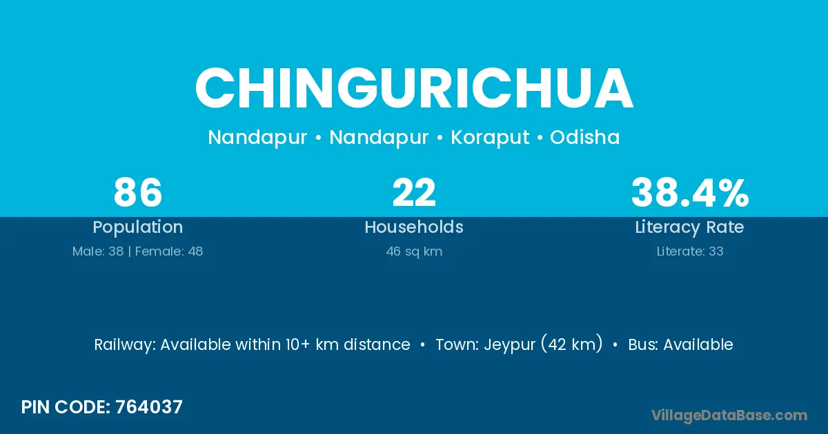 Jeypur (42 km) is the nearest town to Chingurichua village for major economic activities and is located approximately 42 km away.
