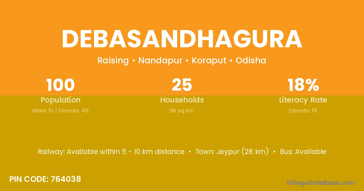Jeypur (28 km) is the nearest town to Debasandhagura village for major economic activities and is located approximately 28 km away.