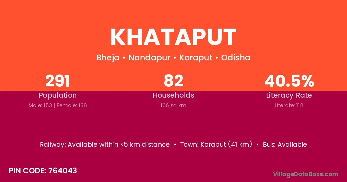 Khataput village has a total population of 291 people, of which 153 are males and 138 are females.
