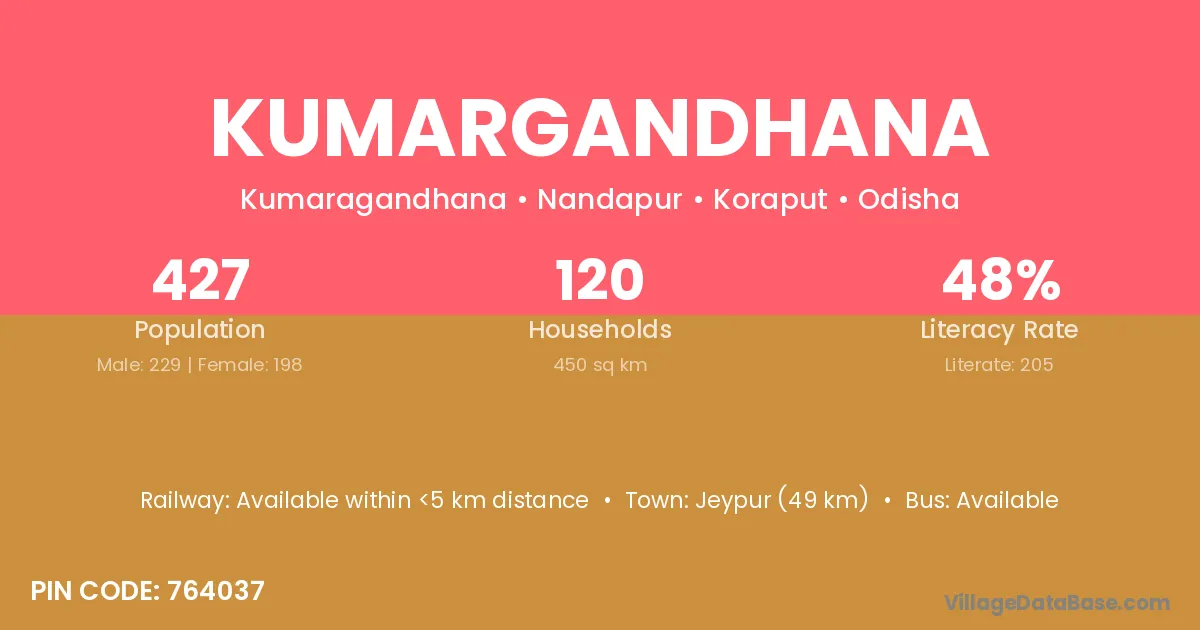 Jeypur (49 km) is the nearest town to Kumargandhana village for major economic activities and is located approximately 49 km away.