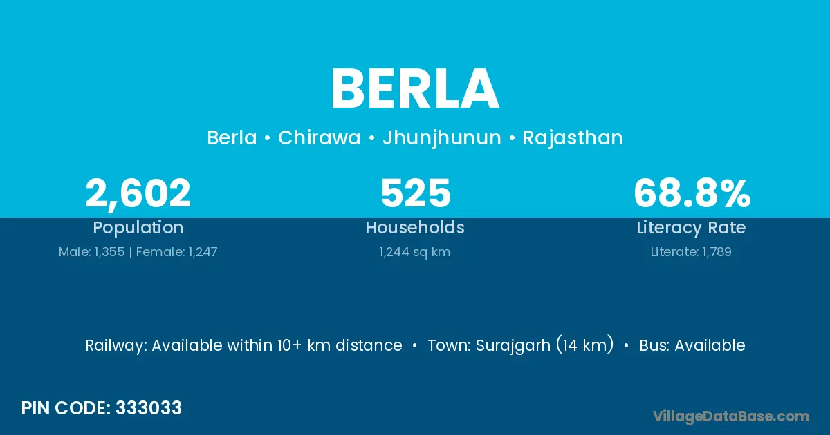 According to Census 2011 information, the village code of Berla village is 765027.