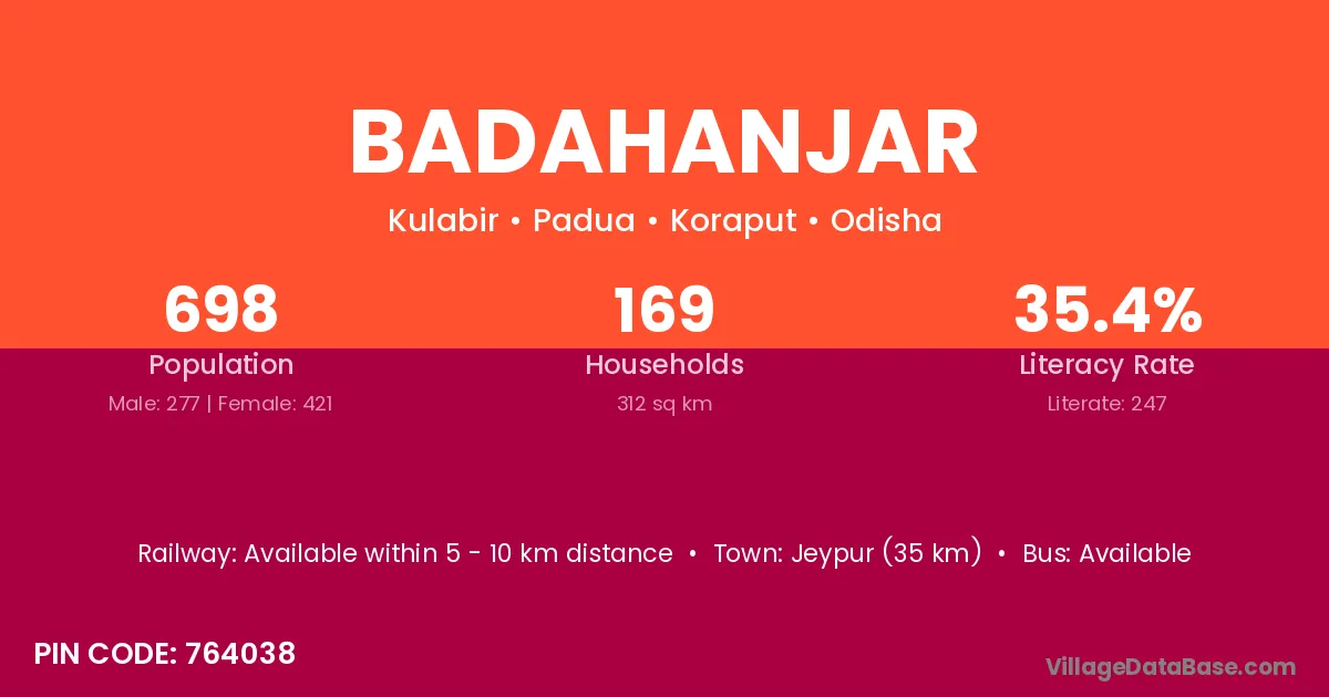 Jeypur (35 km) is the nearest town to Badahanjar village for major economic activities and is located approximately 35 km away.