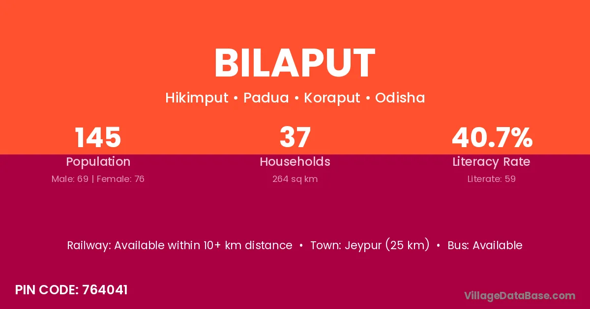 Jeypur (25 km) is the nearest town to Bilaput village for major economic activities and is located approximately 25 km away.