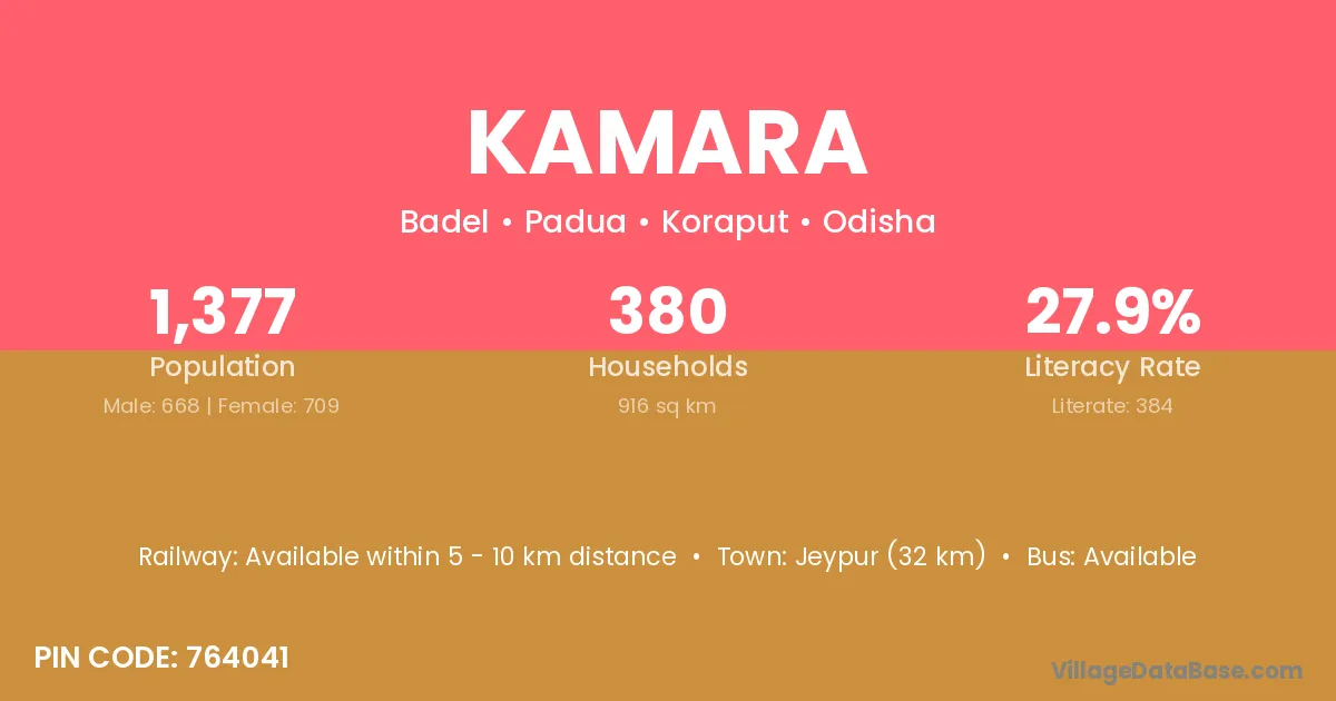 Jeypur (32 km) is the nearest town to Kamara village for major economic activities and is located approximately 32 km away.