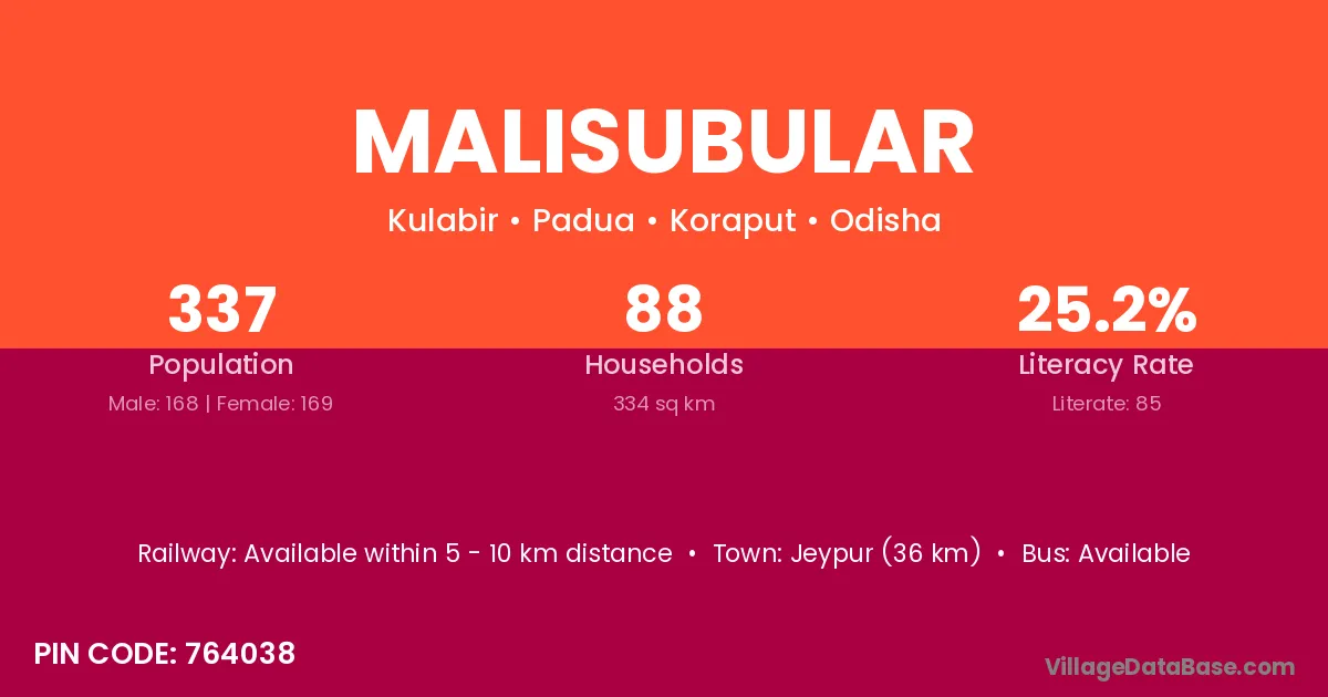 Jeypur (36 km) is the nearest town to Malisubular village for major economic activities and is located approximately 36 km away.