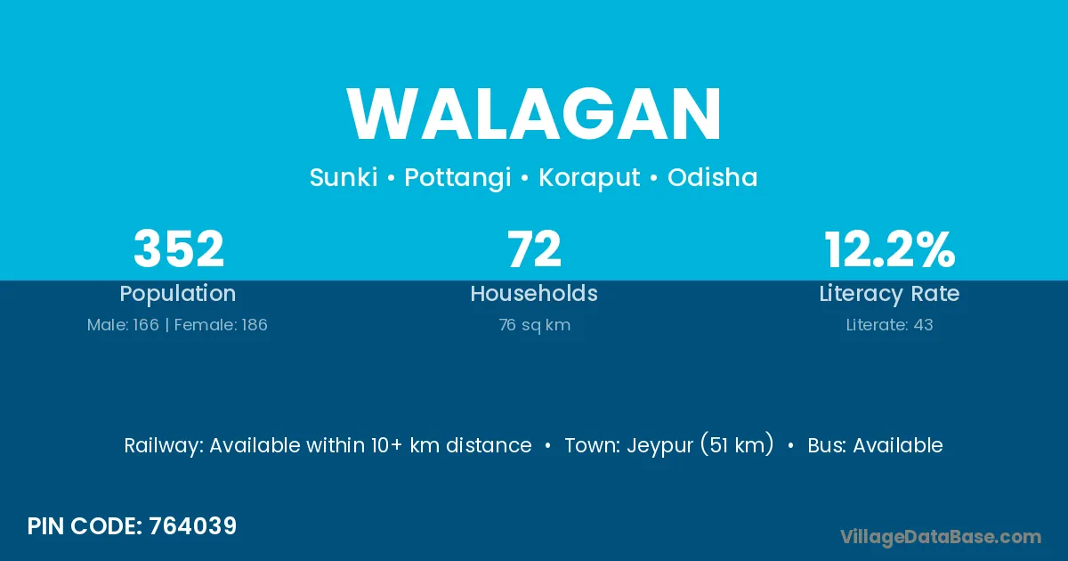Jeypur (51 km) is the nearest town to Walagan village for major economic activities and is located approximately 51 km away.