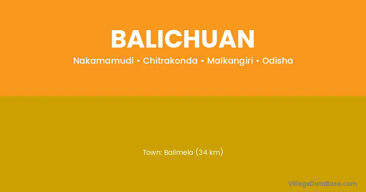 Balimela (34 km) is the nearest town to Balichuan village for major economic activities and is located approximately 34 km away.