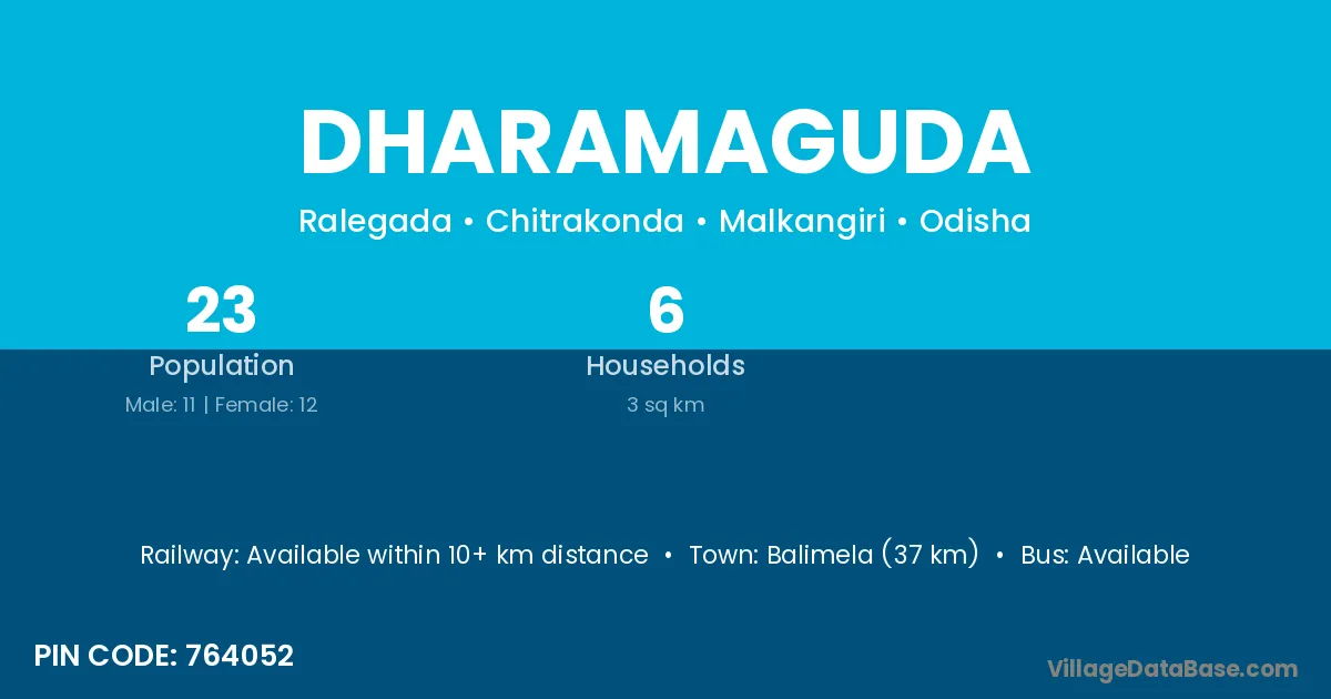 Balimela (37 km) is the nearest town to Dharamaguda village for major economic activities and is located approximately 37 km away.