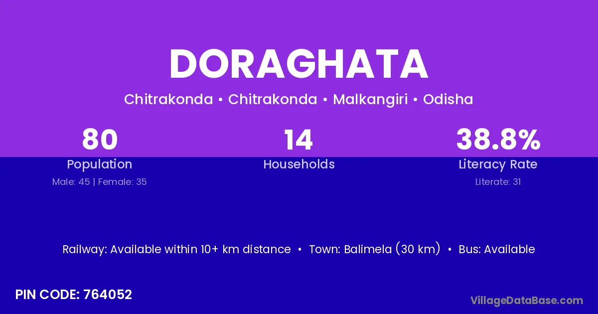Balimela (30 km) is the nearest town to Doraghata village for major economic activities and is located approximately 30 km away.