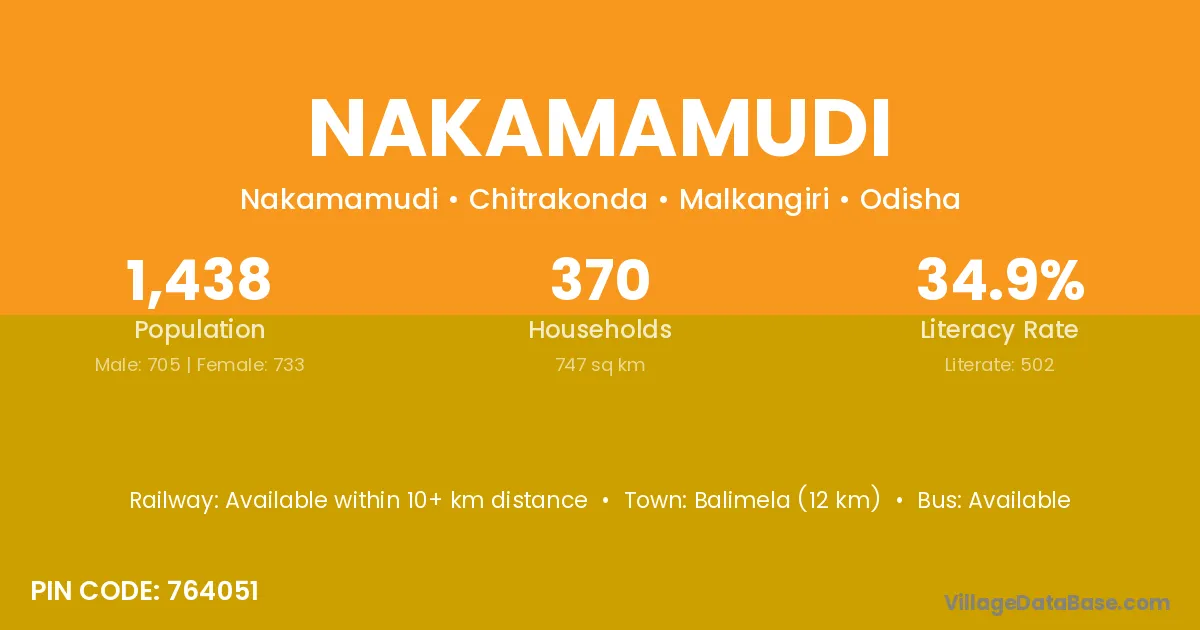 Balimela (12 km) is the nearest town to Nakamamudi village for major economic activities and is located approximately 12 km away.
