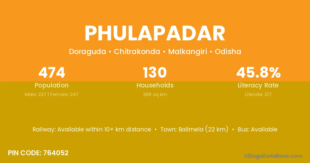 Phulapadar village is located in the Chitrakonda Tehsil of the Malkangiri district in Odisha .