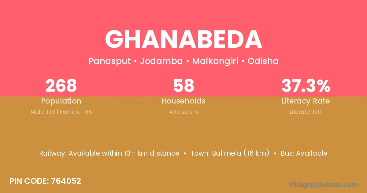 Ghanabeda village is located in the Jodamba Tehsil of the Malkangiri district in Odisha .
