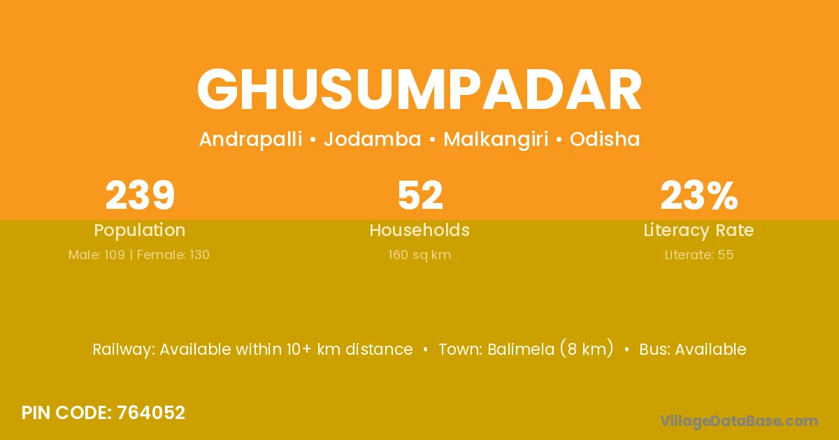 Ghusumpadar village is located in the Jodamba Tehsil of the Malkangiri district in Odisha .