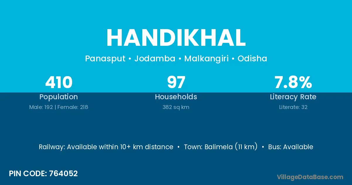 Handikhal village is located in the Jodamba Tehsil of the Malkangiri district in Odisha .