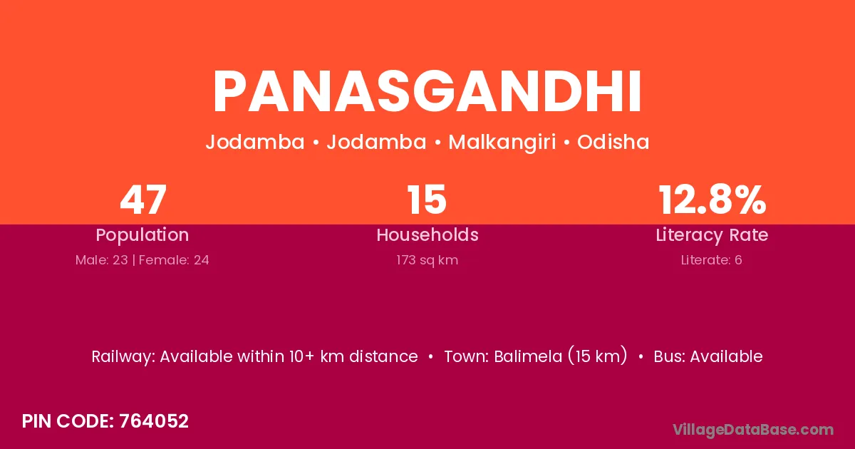 Panasgandhi village is located in the Jodamba Tehsil of the Malkangiri district in Odisha .