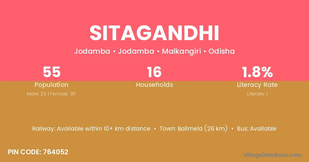 Sitagandhi village is located in the Jodamba Tehsil of the Malkangiri district in Odisha .