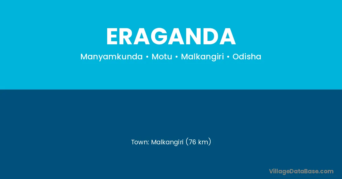 Malkangiri (34 km) is the nearest town to Eraganda village for major economic activities and is located approximately 34 km away.