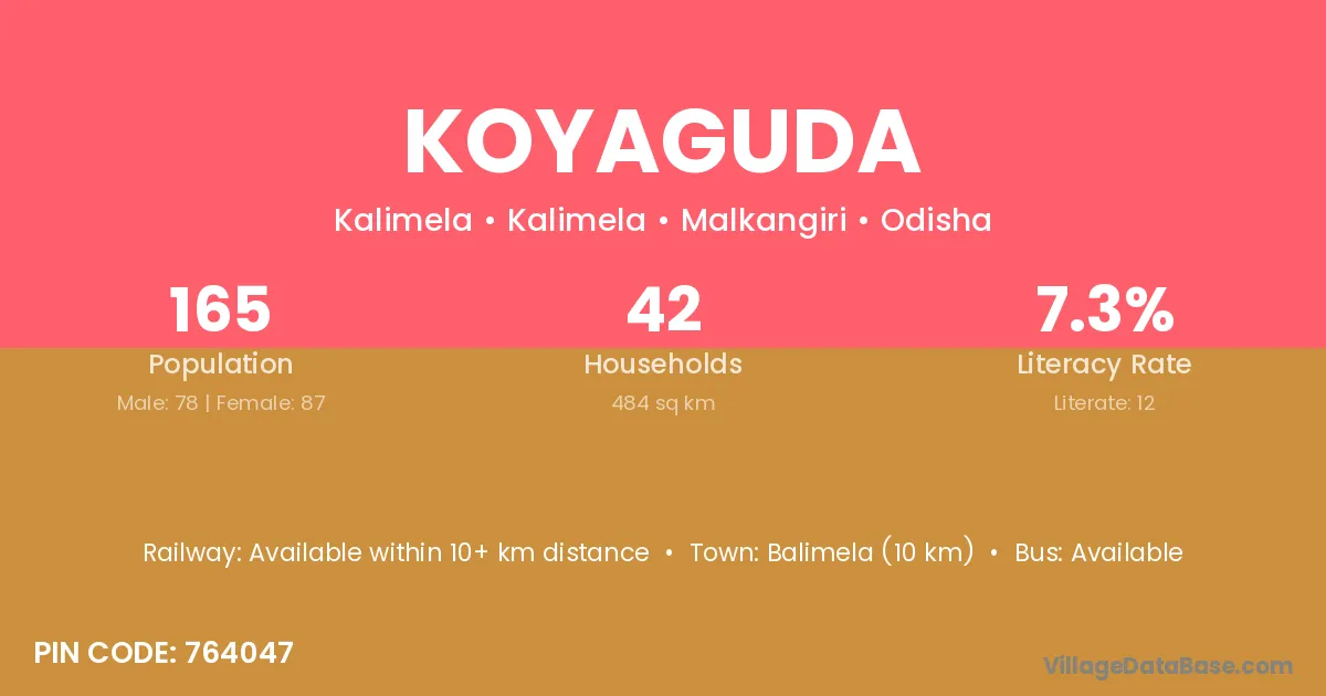 Balimela (10 km) is the nearest town to Koyaguda village for major economic activities and is located approximately 10 km away.
