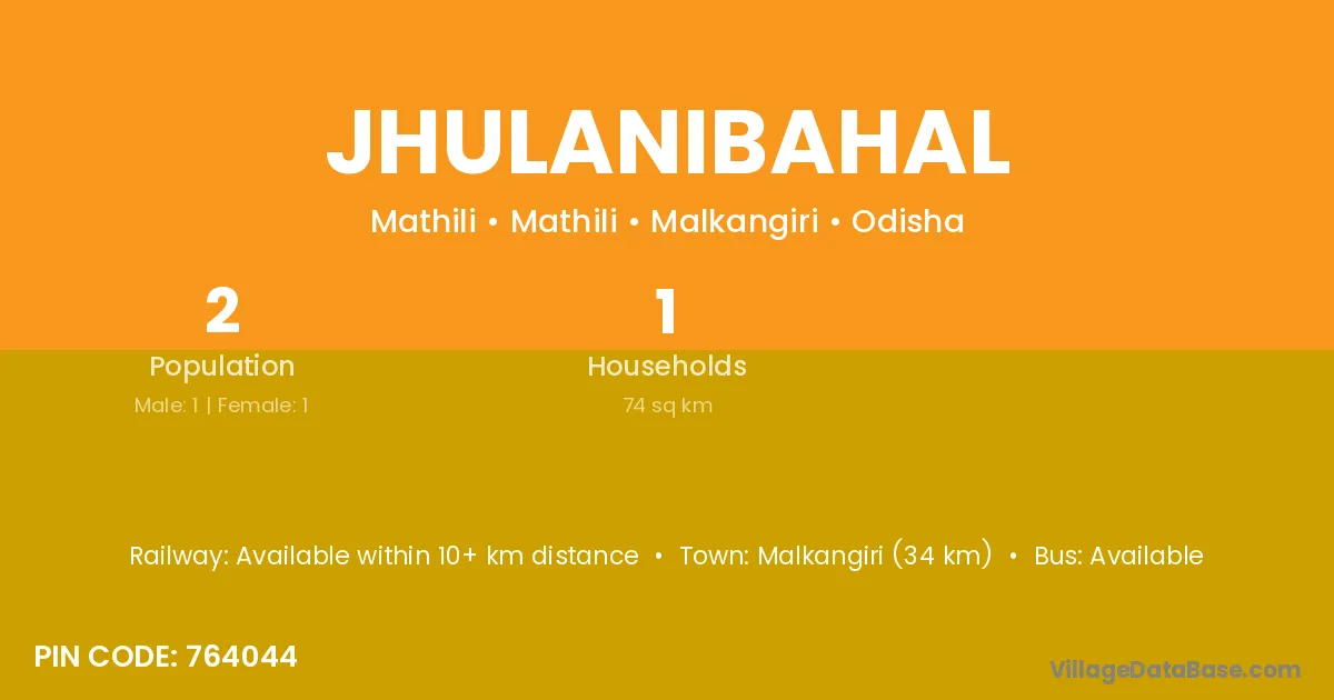 Malkangiri (34 km) is the nearest town to Jhulanibahal village for major economic activities and is located approximately 34 km away.