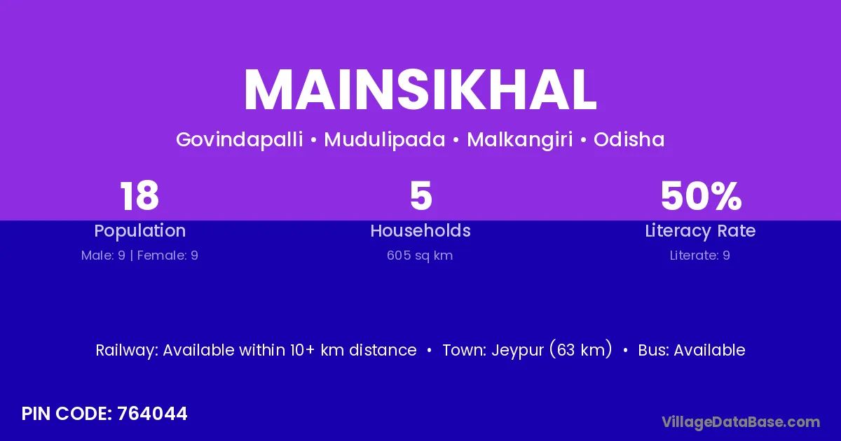 Mainsikhal village is located in the Mudulipada Tehsil of the Malkangiri district in Odisha .
