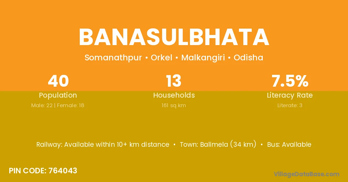Balimela (34 km) is the nearest town to Banasulbhata village for major economic activities and is located approximately 34 km away.