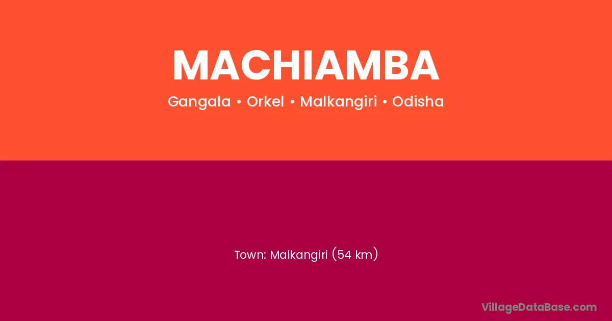 Malkangiri (54 km) is the nearest town to Machiamba village for major economic activities and is located approximately 54 km away.