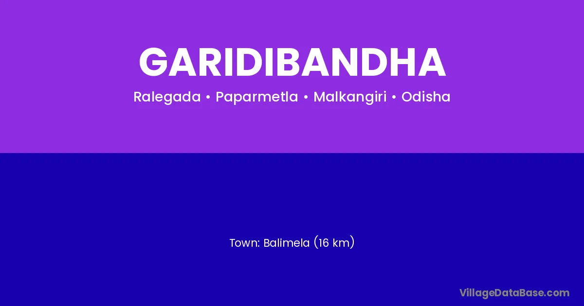 Balimela (16 km) is the nearest town to Garidibandha village for major economic activities and is located approximately 16 km away.