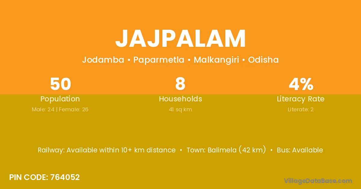 Jajpalam village is located in the Paparmetla Tehsil of the Malkangiri district in Odisha .