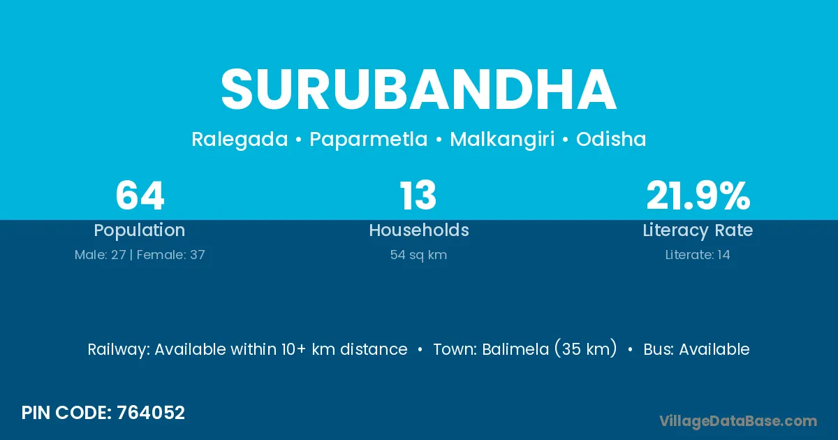 Surubandha village has a total population of 64 people, of which 27 are males and 37 are females.