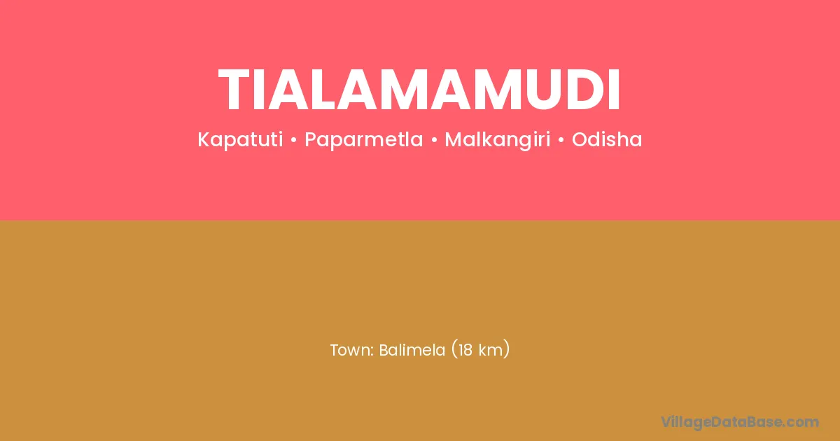 Balimela (18 km) is the nearest town to Tialamamudi village for major economic activities and is located approximately 18 km away.
