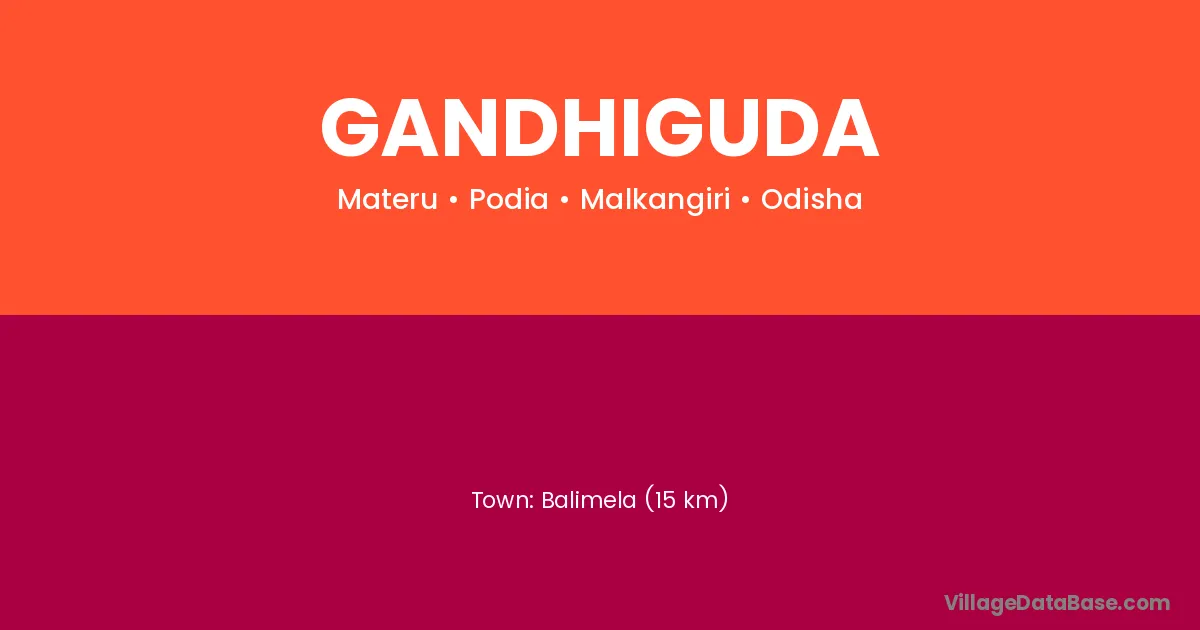 Balimela (15 km) is the nearest town to Gandhiguda village for major economic activities and is located approximately 15 km away.