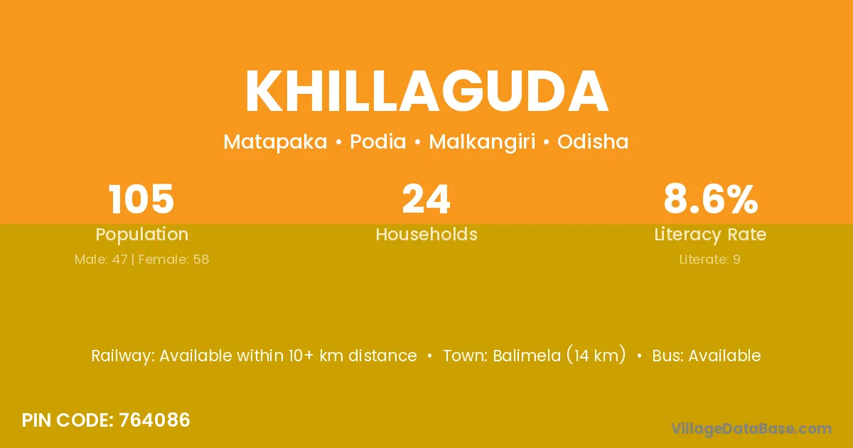 Khillaguda village is located in the Podia Tehsil of the Malkangiri district in Odisha .