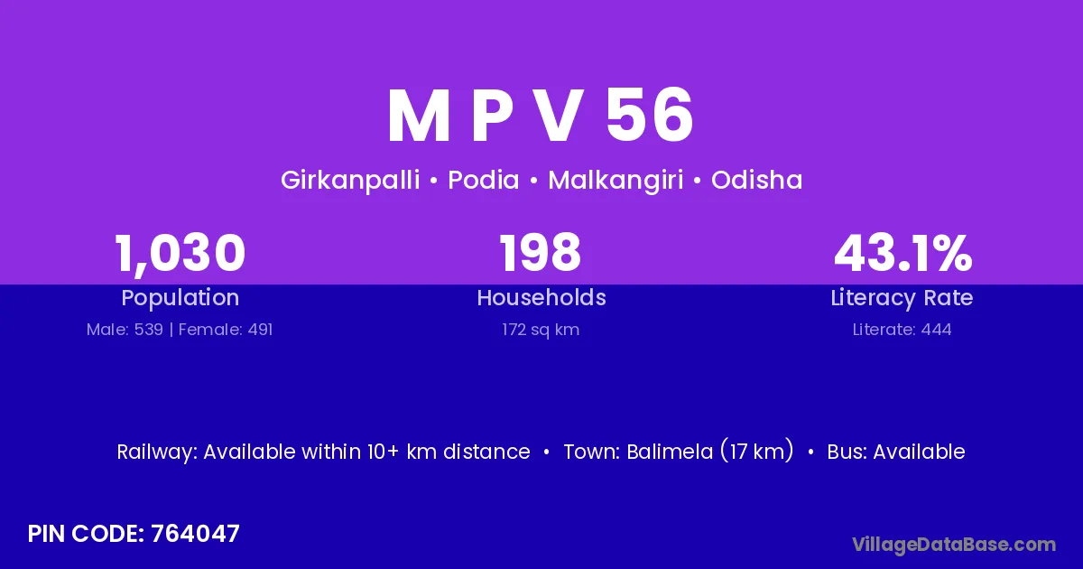 M P V 56 village is located in the Podia Tehsil of the Malkangiri district in Odisha .